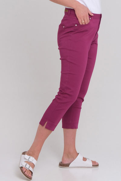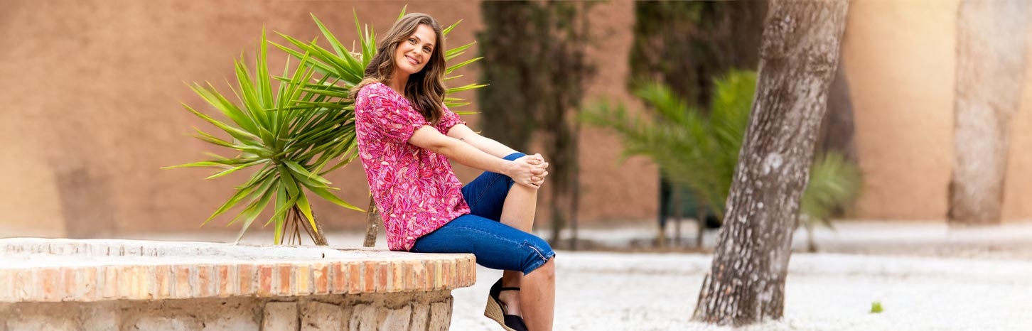 Friske farger og mønstre hører hjemme i sommerhalvåret, og kan glede både deg selv og andre rundt deg. Kombiner en enkel overdel med Jasmin pirat – og la det sommerlige mønsteret skinne for seg selv. Velg en av fargene i trykket om du da ikke velger å for klassisk hvit. Siri capri får du i flere spreke varianter, blant annet i denne nydelige plommefargen. Siri gir et friskt pust blant de nøytrale buksene man ofte bruker i hverdagen, og kan styles med alt fra en enkel t-skjorte til en mønstret bluse i komplementære farger. Olympia bluse er stylistens tips om du går for en mønstret variant.