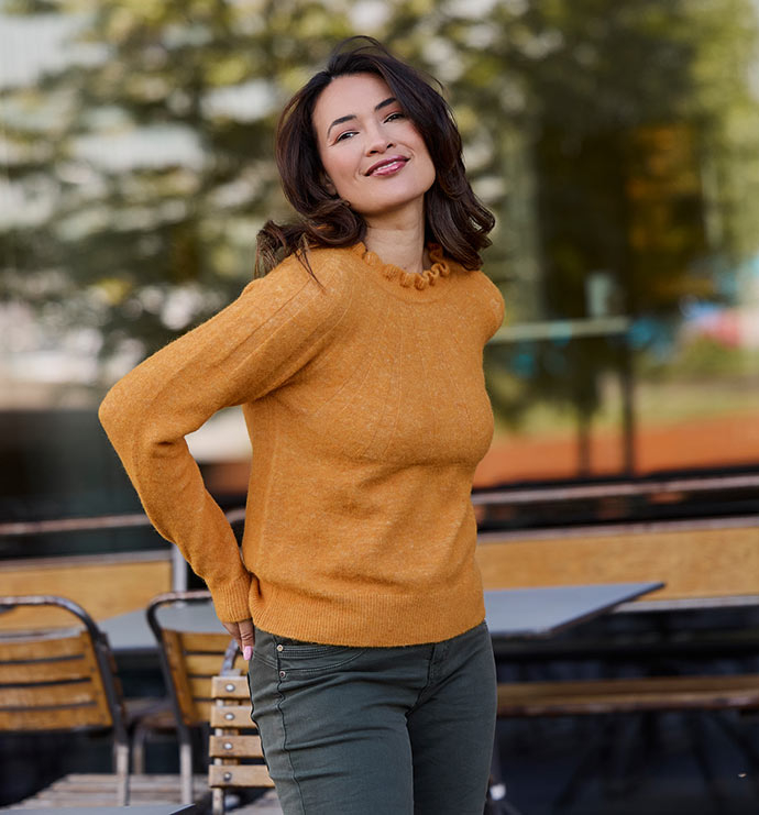 Jordtoner og dype farger er det vi forbinder med en ny tid, en ny sesong og sommerslutt. Dette gjenspeiles i vår kolleksjon i form av farger som varm burgunder, sjokoladebrunt, beige, grønntoner og okergult. Vi vil ha klær som representerer skiftet rundt oss, men som samtidig er varme, lune og gode å ha på seg når mørket gradvis senker seg.