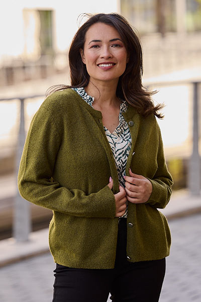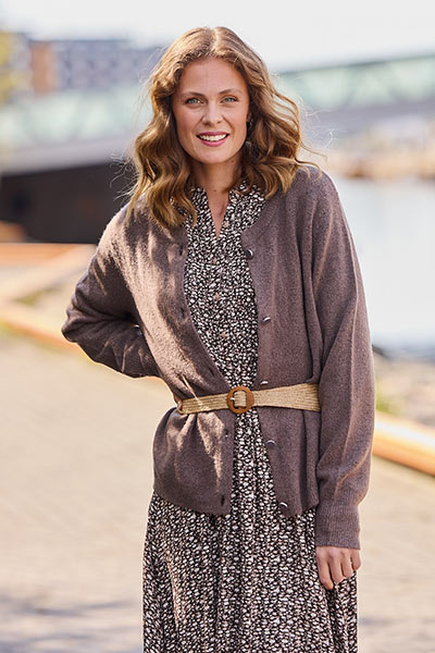 En cardigan er kanskje det mest allsidige plagget som finnes. Den er enkel å ta av og på seg, og pynter samtidig like gjerne opp og ned et antrekk. Den kan like gjerne brukes over en bluse, topp eller en kjole - her kan du mikse og trikse så mye du orker. Velg en cardigan i en allsidig grønn- eller brunfarge, det passer både til okergul, blå, lilla og rosa.